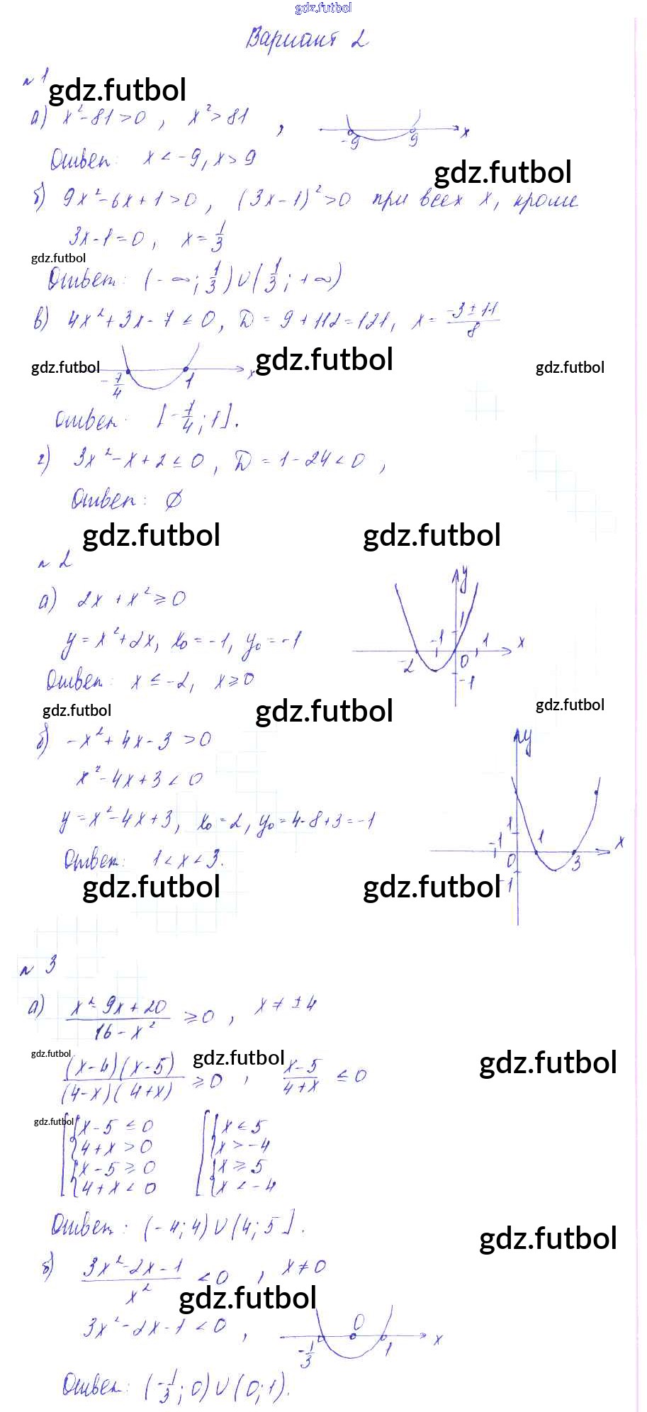 Готовые домашние задания по Алгебре за 8 класс Зив Дидактические материалы 2012 ФГОС - СР №16. Метод интервалов Вариант-2