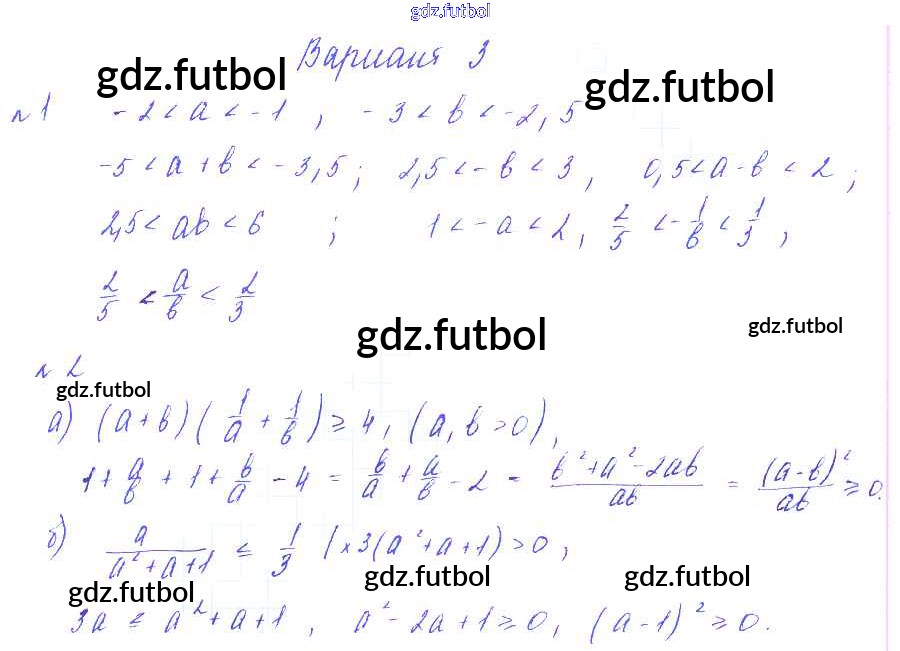 Готовые домашние задания по Алгебре за 8 класс Зив Дидактические материалы 2012 ФГОС - СР №2. Свойства числовых неравенств. Сложение и умножение неравенств Вариант-3