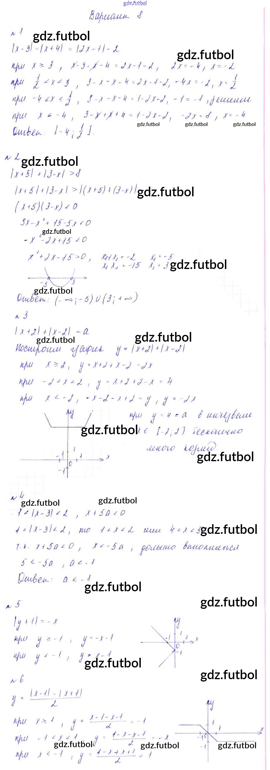Готовые домашние задания по Алгебре за 8 класс Зив Дидактические материалы 2012 ФГОС - СР №5.Модуль числа. Уравнения и неравенства, содержащие модуль Вариант-8