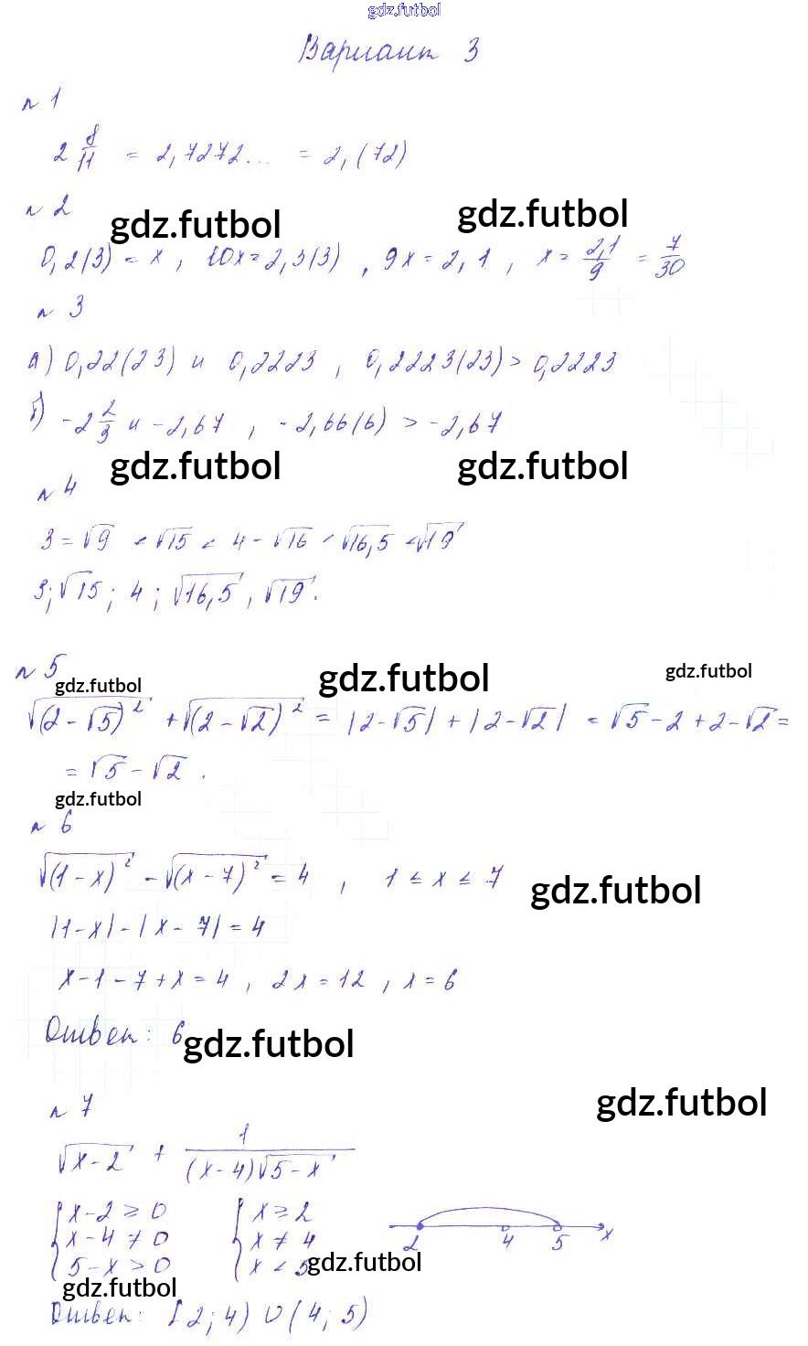 Готовые домашние задания по Алгебре за 8 класс Зив Дидактические материалы 2012 ФГОС - СР №6. Действительные числа. Арифметический квадратный корень Вариант-3
