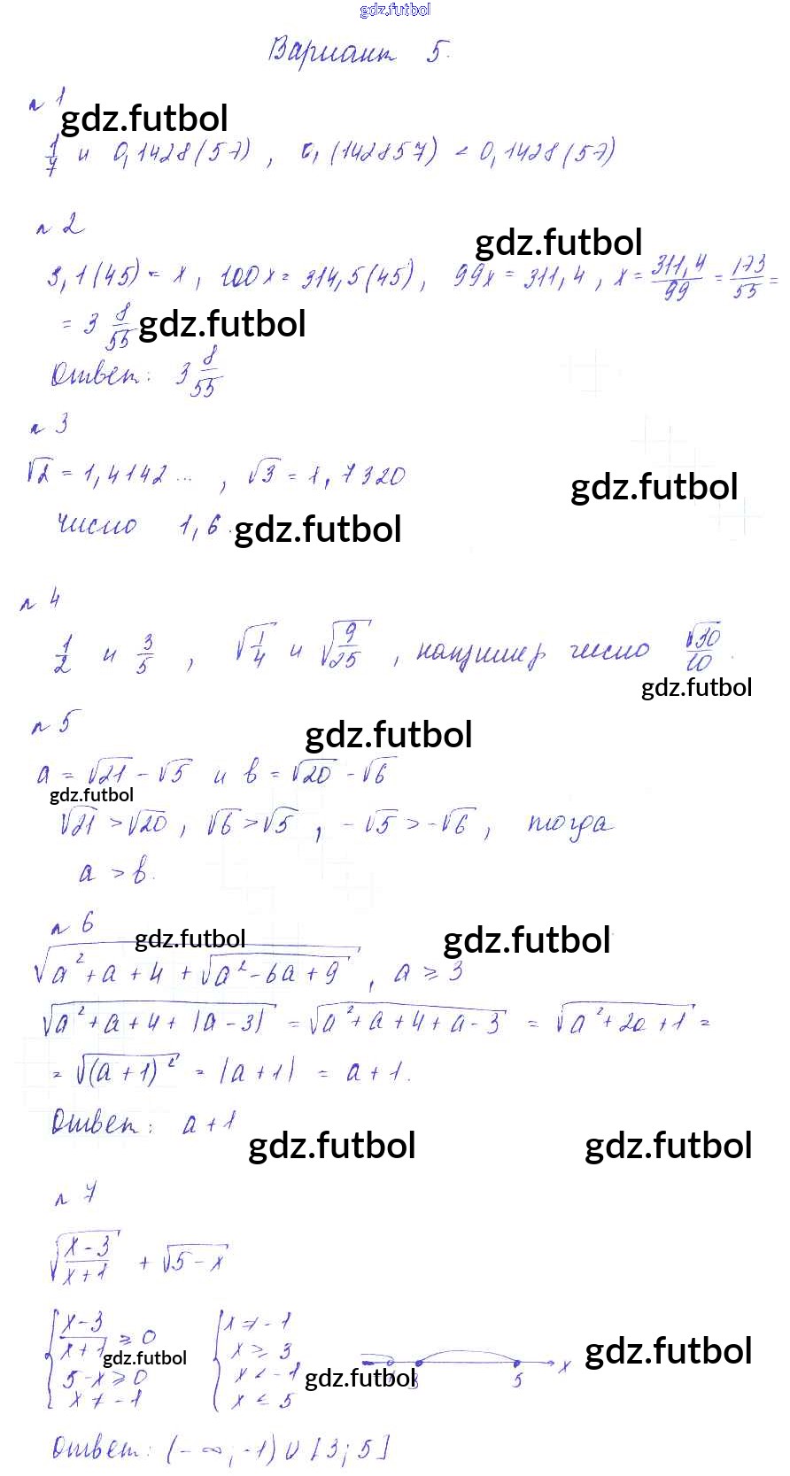 Готовые домашние задания по Алгебре за 8 класс Зив Дидактические материалы 2012 ФГОС - СР №6. Действительные числа. Арифметический квадратный корень Вариант-5