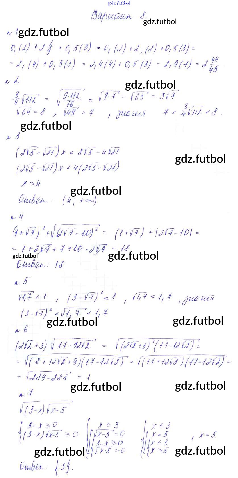 Готовые домашние задания по Алгебре за 8 класс Зив Дидактические материалы 2012 ФГОС - СР №6. Действительные числа. Арифметический квадратный корень Вариант-8