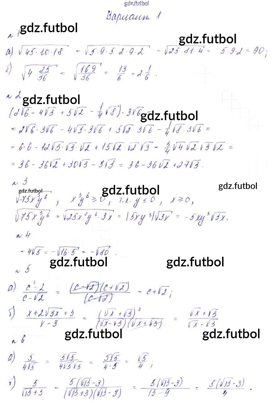 Готовые домашние задания по Алгебре за 8 класс Зив Дидактические материалы 2012 ФГОС - СР №7. Квадратный корень из произведения и дроби Вариант-1