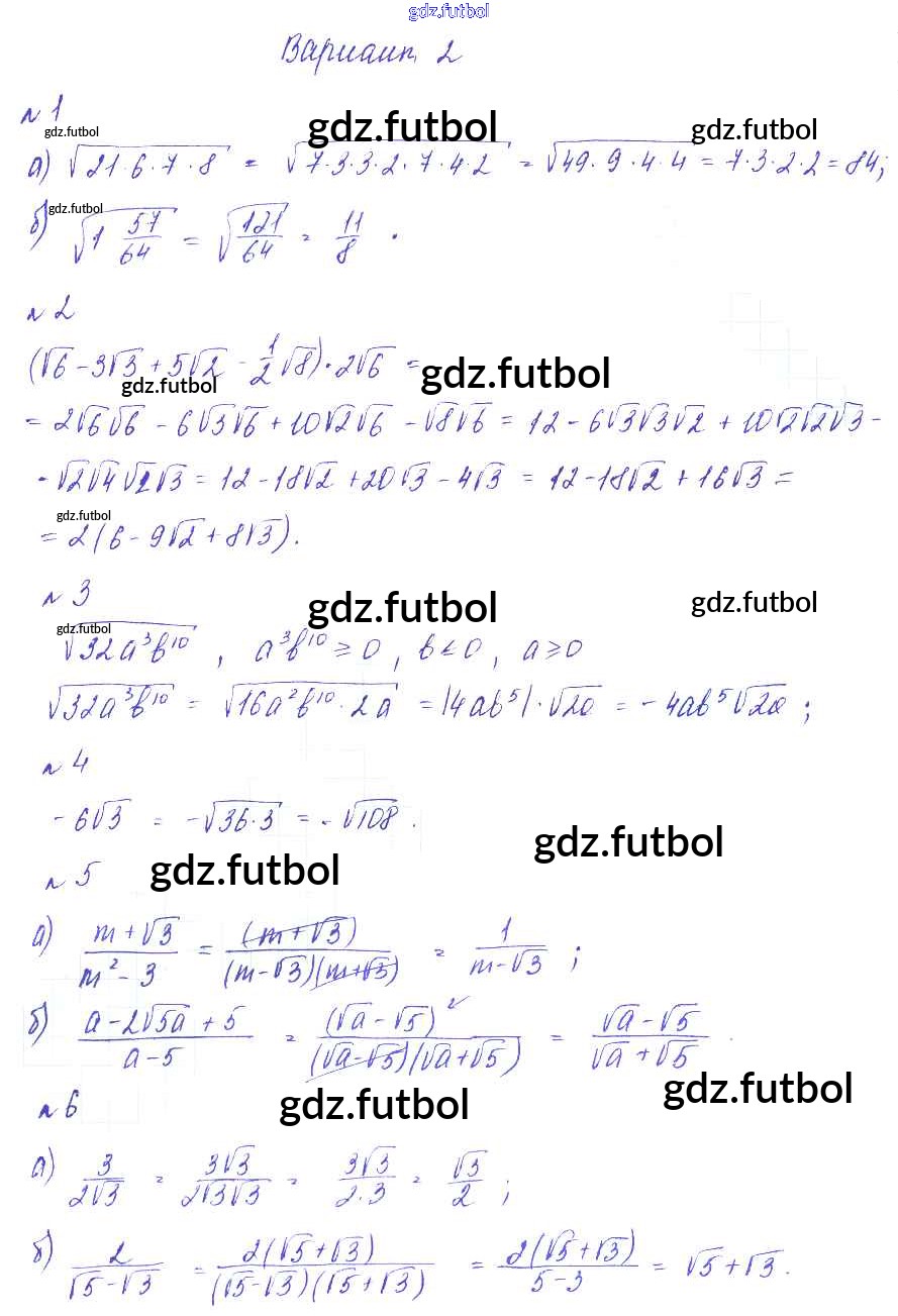Готовые домашние задания по Алгебре за 8 класс Зив Дидактические материалы 2012 ФГОС - СР №7. Квадратный корень из произведения и дроби Вариант-2
