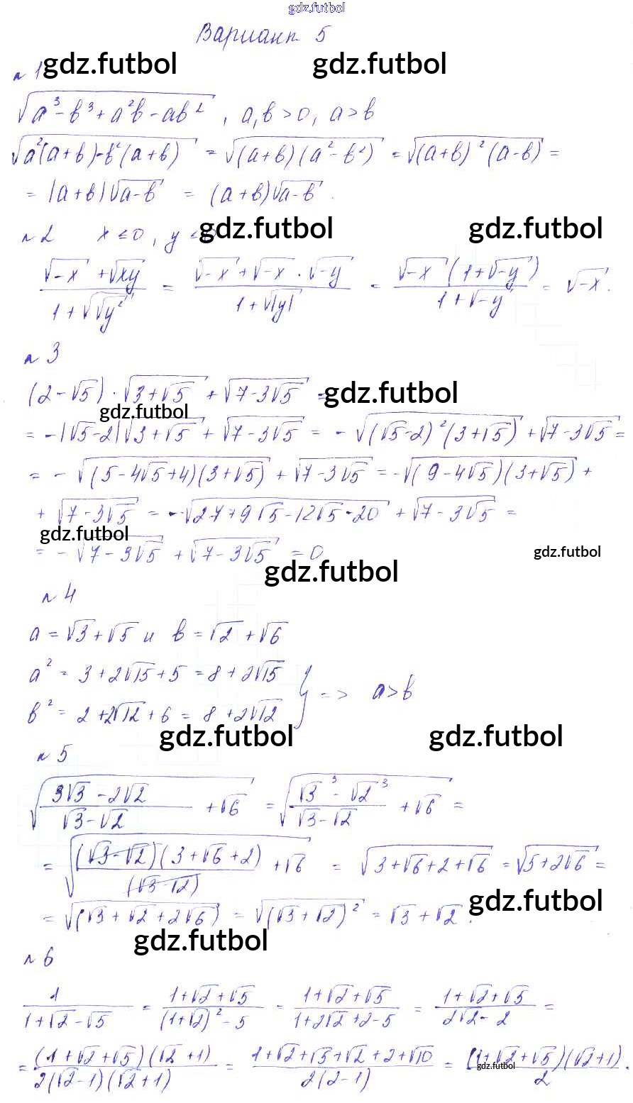Готовые домашние задания по Алгебре за 8 класс Зив Дидактические материалы 2012 ФГОС - СР №7. Квадратный корень из произведения и дроби Вариант-5
