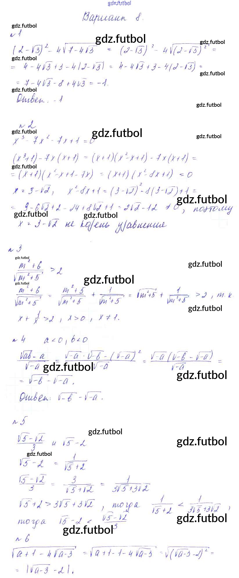Готовые домашние задания по Алгебре за 8 класс Зив Дидактические материалы 2012 ФГОС - СР №7. Квадратный корень из произведения и дроби Вариант-8