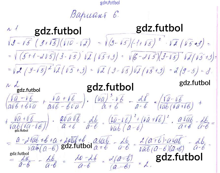 Готовые домашние задания по Алгебре за 8 класс Зив Дидактические материалы 2012 ФГОС - СР №8. Упражнения на все действия с арифметическими корнями Вариант-6