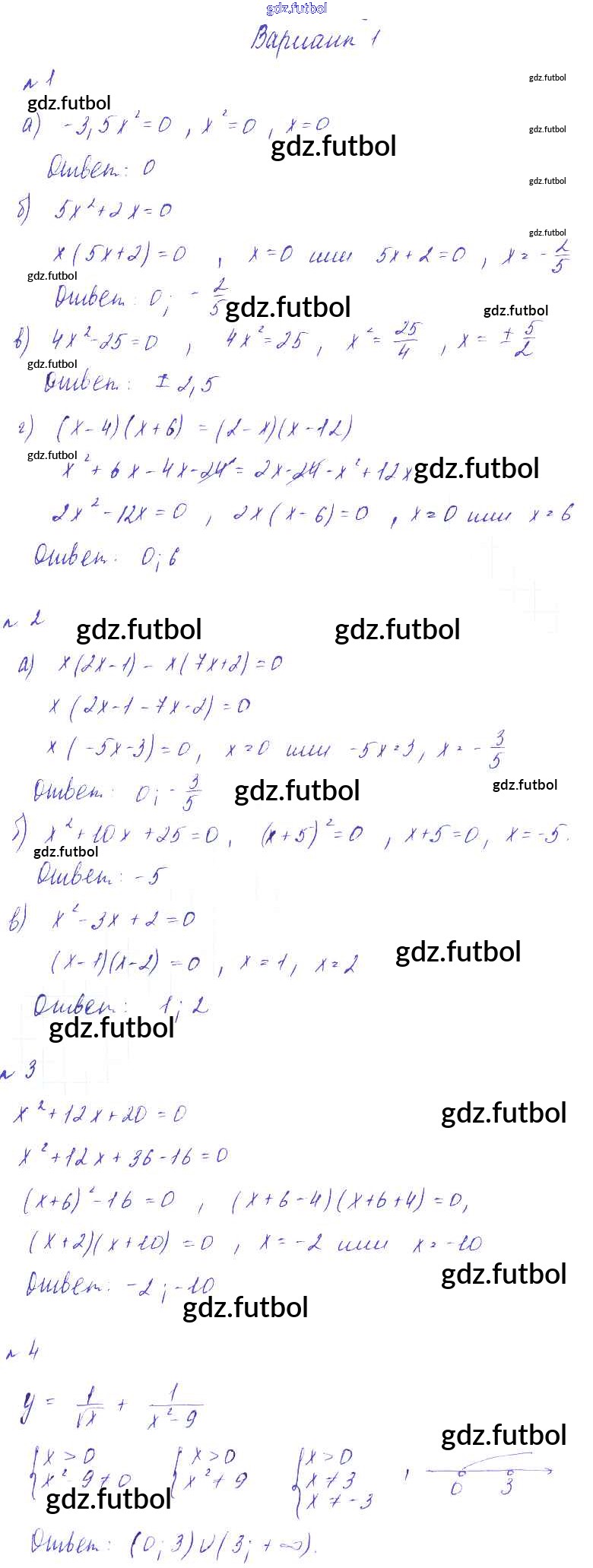 Готовые домашние задания по Алгебре за 8 класс Зив Дидактические материалы 2012 ФГОС - СР №9. Неполные квадратные уравнения Вариант-1