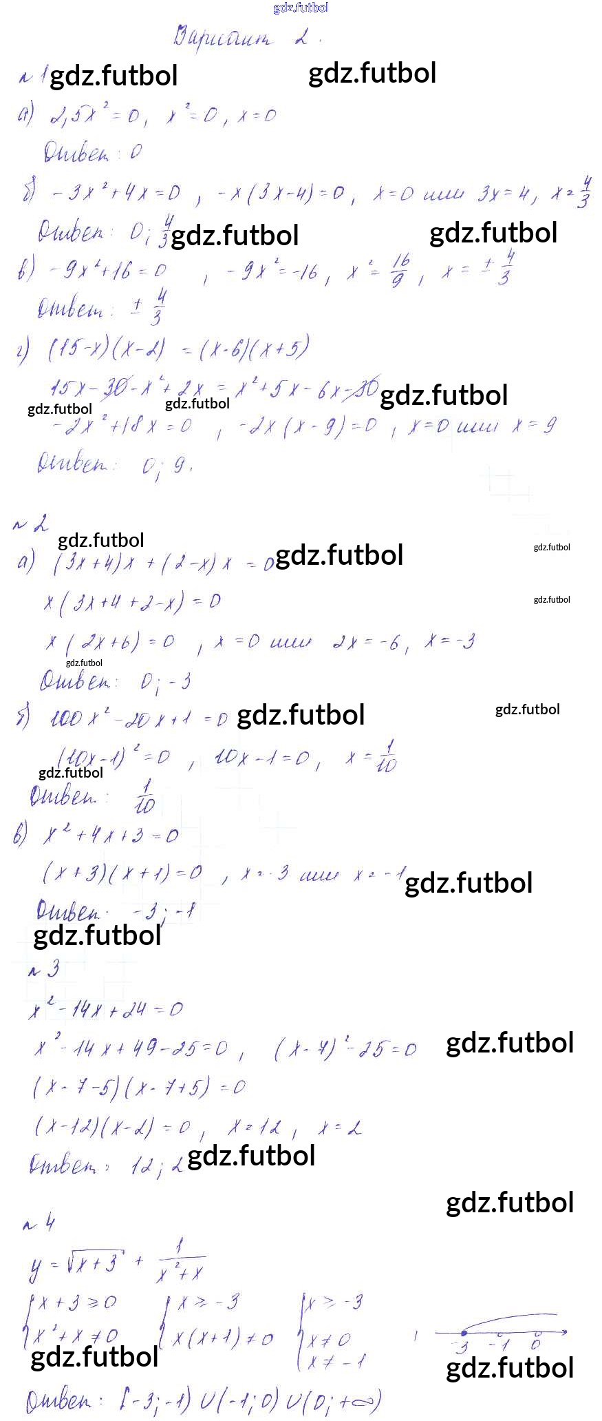 Готовые домашние задания по Алгебре за 8 класс Зив Дидактические материалы 2012 ФГОС - СР №9. Неполные квадратные уравнения Вариант-2