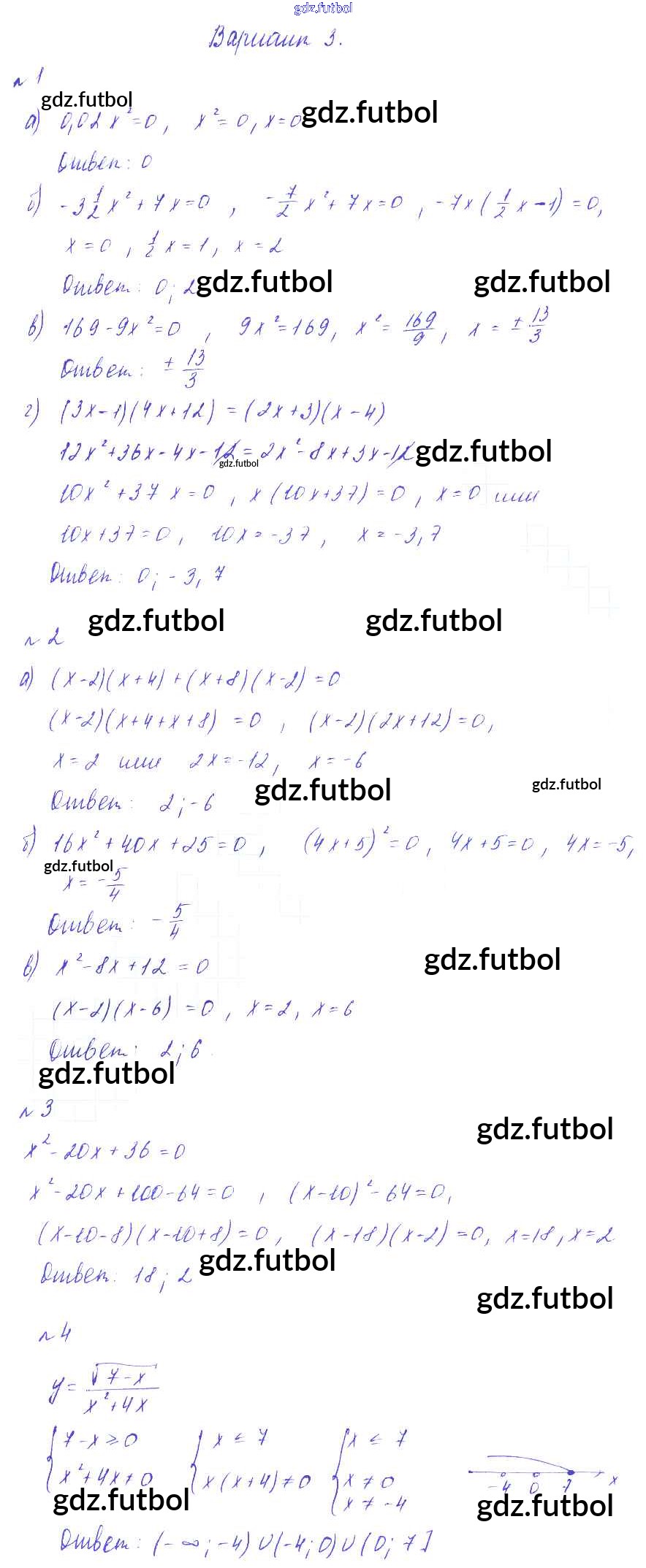 Готовые домашние задания по Алгебре за 8 класс Зив Дидактические материалы 2012 ФГОС - СР №9. Неполные квадратные уравнения Вариант-3
