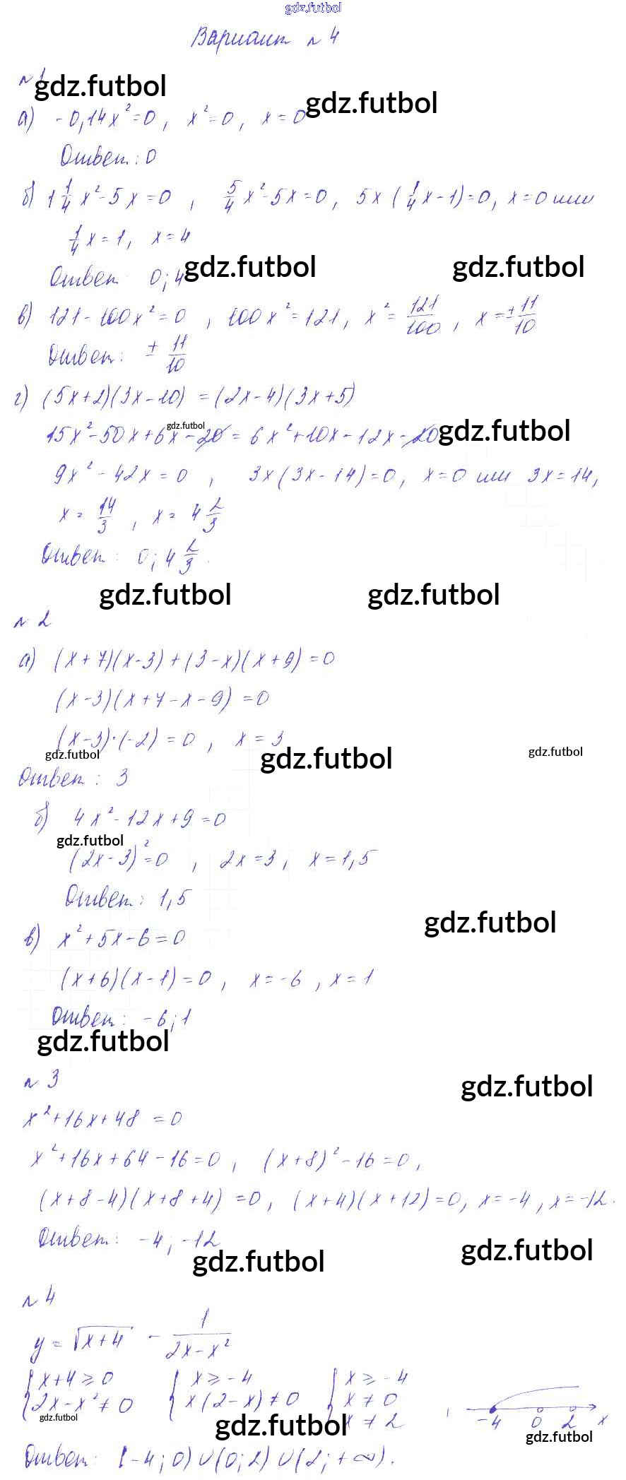 Готовые домашние задания по Алгебре за 8 класс Зив Дидактические материалы 2012 ФГОС - СР №9. Неполные квадратные уравнения Вариант-4