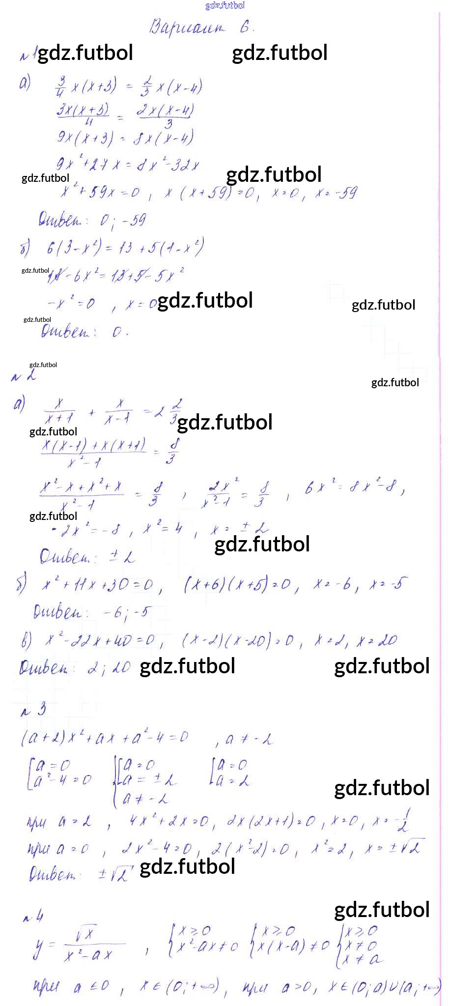 Готовые домашние задания по Алгебре за 8 класс Зив Дидактические материалы 2012 ФГОС - СР №9. Неполные квадратные уравнения Вариант-6