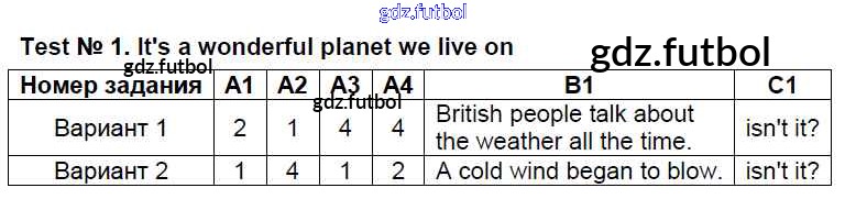 Готовые домашние задания по Английскому языку за 8 класс Лысакова Контрольно-измерительные материалы (КИМ) 2018 ФГОС - Тесты Test №1. It's a wonderful planet we live on