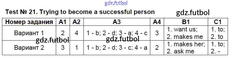 Готовые домашние задания по Английскому языку за 8 класс Лысакова Контрольно-измерительные материалы (КИМ) 2018 ФГОС - Тесты Test №21. Trying to become a successful person