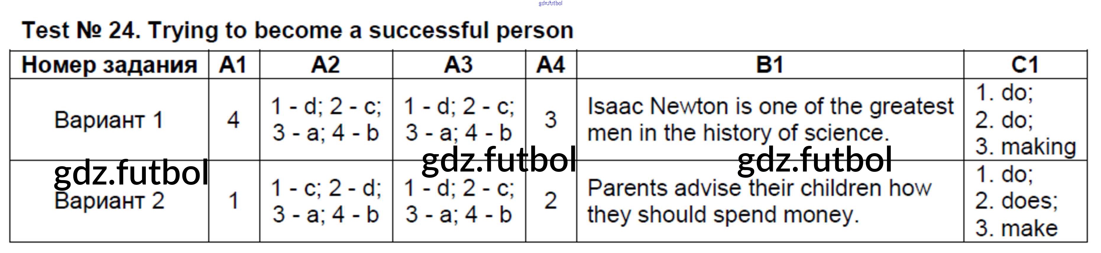Готовые домашние задания по Английскому языку за 8 класс Лысакова Контрольно-измерительные материалы (КИМ) 2018 ФГОС - Тесты Test №24. Trying to become a successful person