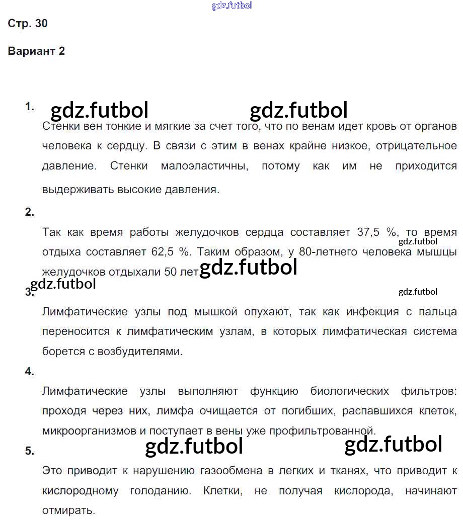 Готовые домашние задания по Биологии за 8 класс Сухорукова Тетрадь-экзаменатор Сферы 2016 ФГОС - Страницы 30
