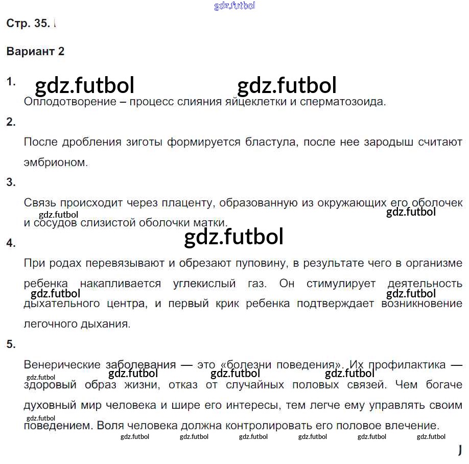 Готовые домашние задания по Биологии за 8 класс Сухорукова Тетрадь-экзаменатор Сферы 2016 ФГОС - Страницы 35