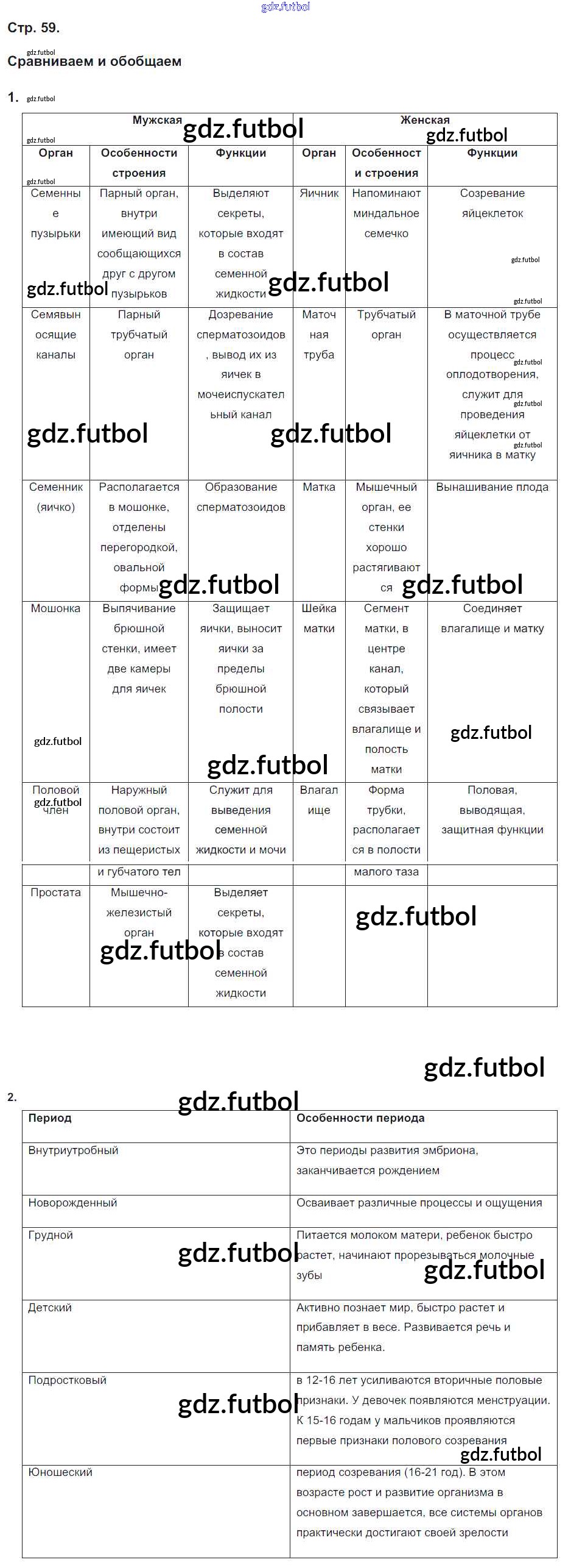 Готовые домашние задания по Биологии за 8 класс Сухорукова Тетрадь-тренажёр Сферы 2017 ФГОС - Страницы 59