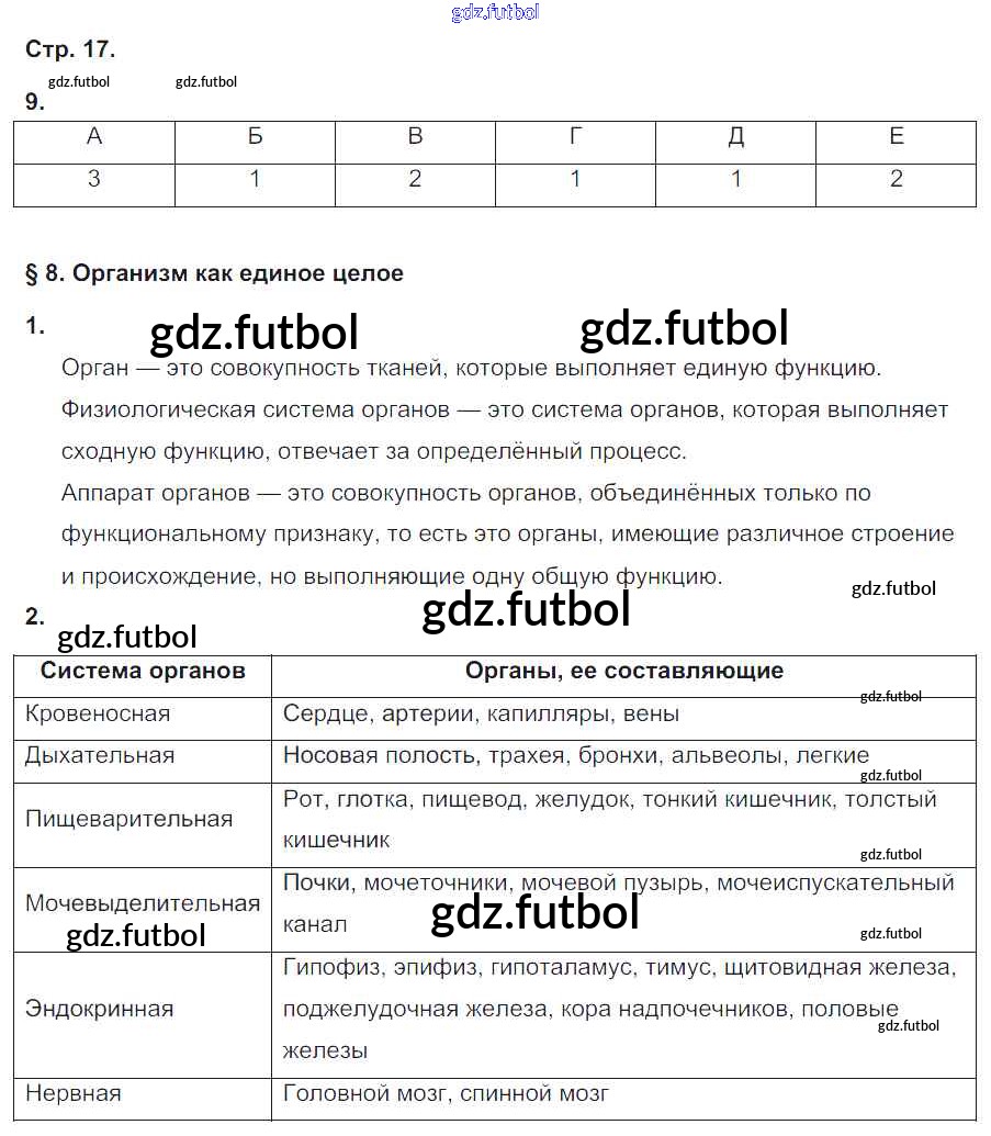 Готовые домашние задания по Биологии за 8 класс Жемчугова Рабочая тетрадь Инновационная школа 2017 ФГОС - Страницы 17