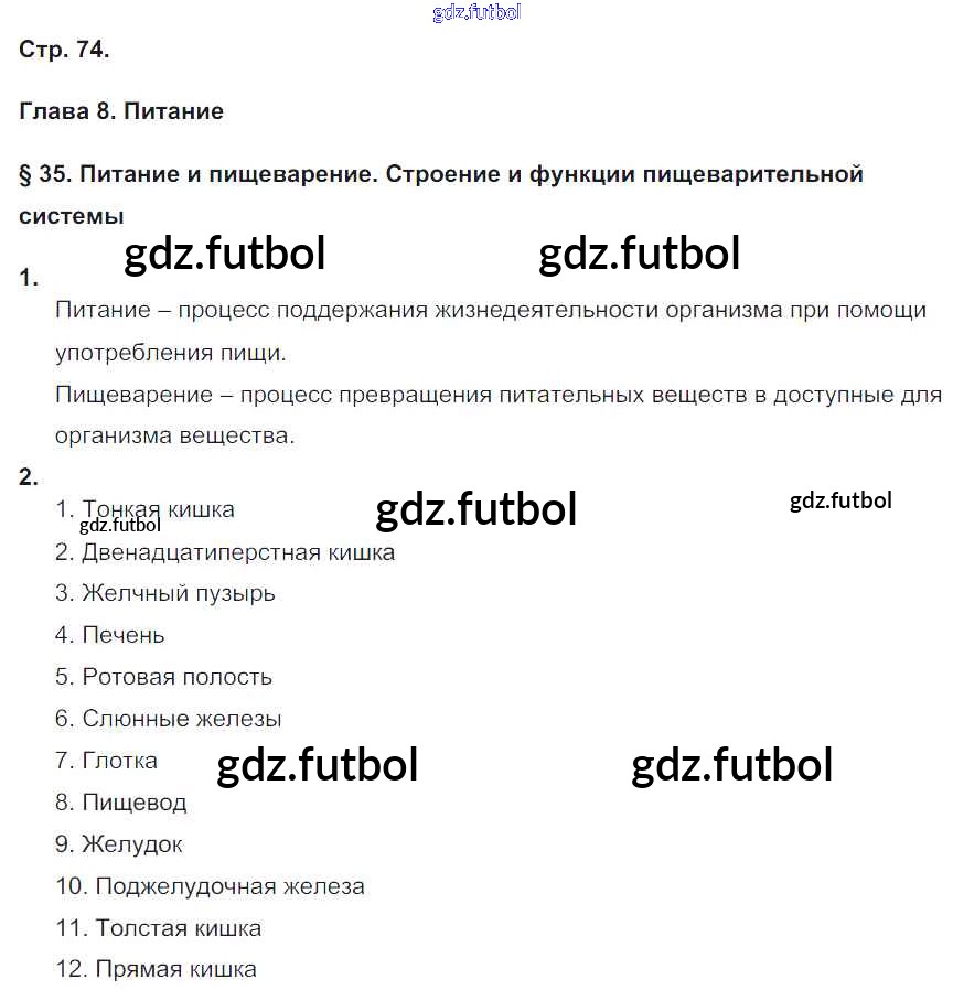 Готовые домашние задания по Биологии за 8 класс Жемчугова Рабочая тетрадь Инновационная школа 2017 ФГОС - Страницы 74