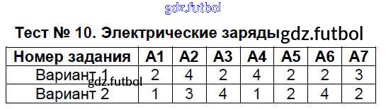 Готовые домашние задания по Физике за 8 класс Бобошина Контрольно-измерительные материалы (КИМ) 2014 ФГОС - Тесты Тест-10. Электрические заряды