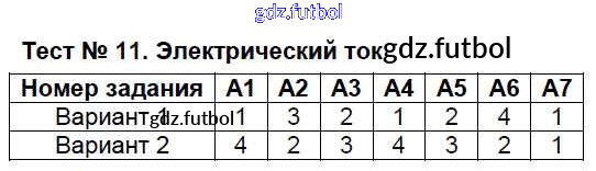 Готовые домашние задания по Физике за 8 класс Бобошина Контрольно-измерительные материалы (КИМ) 2014 ФГОС - Тесты Тест-11. Электрический ток
