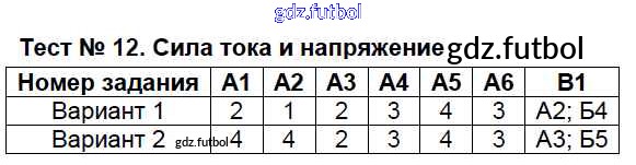 Готовые домашние задания по Физике за 8 класс Бобошина Контрольно-измерительные материалы (КИМ) 2014 ФГОС - Тесты Тест-12. Сила тока и напряжение