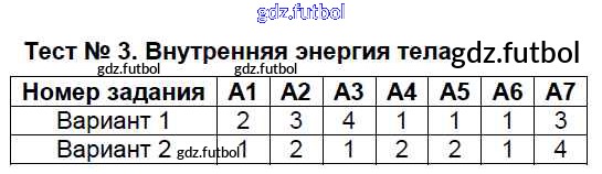 Готовые домашние задания по Физике за 8 класс Бобошина Контрольно-измерительные материалы (КИМ) 2014 ФГОС - Тесты Тест-3. Внутренняя энергия тела