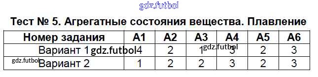 Готовые домашние задания по Физике за 8 класс Бобошина Контрольно-измерительные материалы (КИМ) 2014 ФГОС - Тесты Тест-5. Агрегатные состояния вещества. Плавление