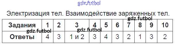 Готовые домашние задания по Физике за 8 класс Чеботарева Тесты УМК 2017 ФГОС - Часть 1 1. Электризация тел. Взаимодействие заряженных тел