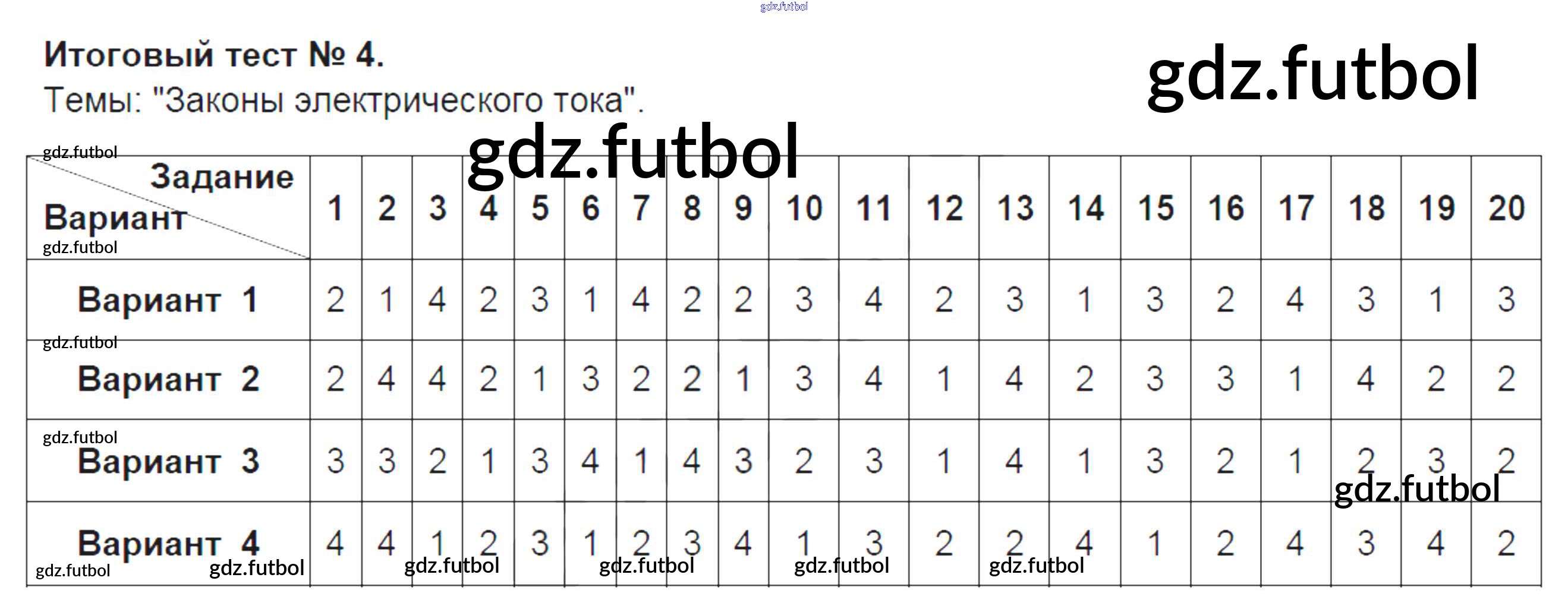 Готовые домашние задания по Физике за 8 класс Чеботарева Тесты УМК 2017 ФГОС - Часть 2 16. Итоговый тест №4