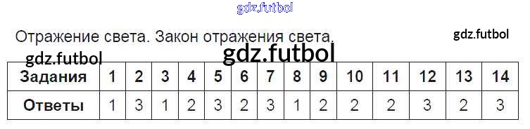 Готовые домашние задания по Физике за 8 класс Чеботарева Тесты УМК 2017 ФГОС - Световые явления 3. Отражение света. Закон отражения света
