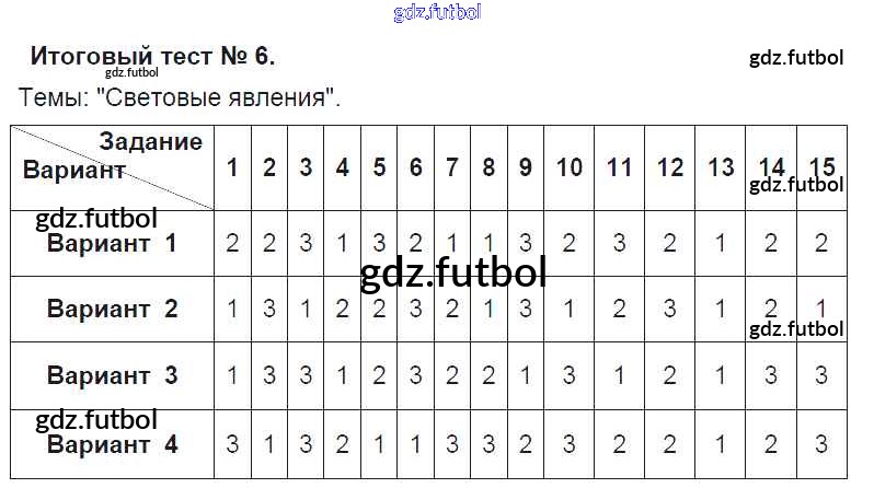 Готовые домашние задания по Физике за 8 класс Чеботарева Тесты УМК 2017 ФГОС - Световые явления 9. Итоговый тест №6