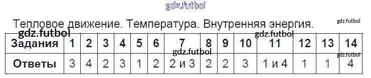 Готовые домашние задания по Физике за 8 класс Чеботарева Тесты УМК 2017 ФГОС - Часть 1 1. Тепловое движение. Температура. Внутренняя энергия