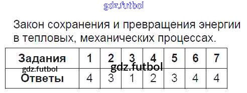 Готовые домашние задания по Физике за 8 класс Чеботарева Тесты УМК 2017 ФГОС - Часть 1 10. Закон сохранения и превращения энергии в тепловых, механических процессах