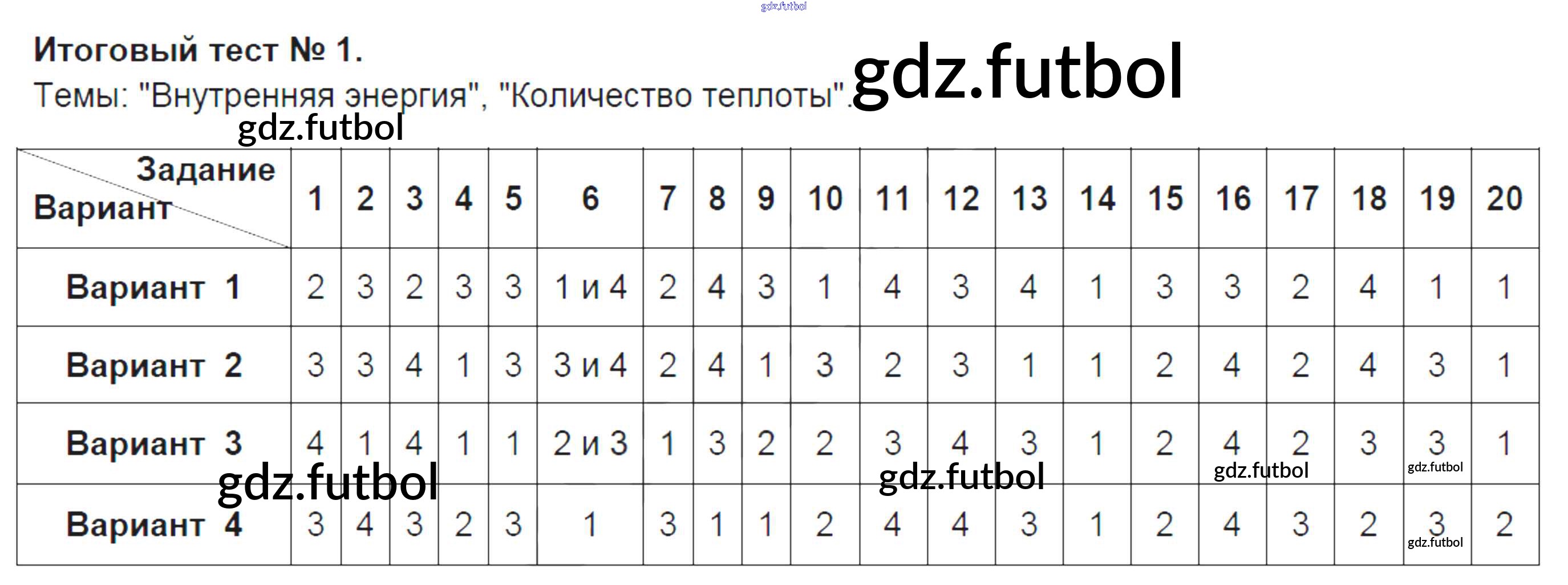 Готовые домашние задания по Физике за 8 класс Чеботарева Тесты УМК 2017 ФГОС - Часть 1 11. Итоговый тест №1
