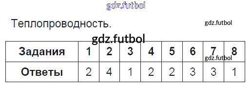 Готовые домашние задания по Физике за 8 класс Чеботарева Тесты УМК 2017 ФГОС - Часть 1 3. Теплопроводность