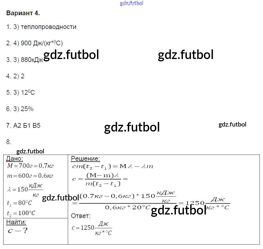 Готовые домашние задания по Физике за 8 класс Громцева Контрольные и самостоятельные работы УМК 2017 ФГОС - Глава 1. Тепловые явления вариант-4