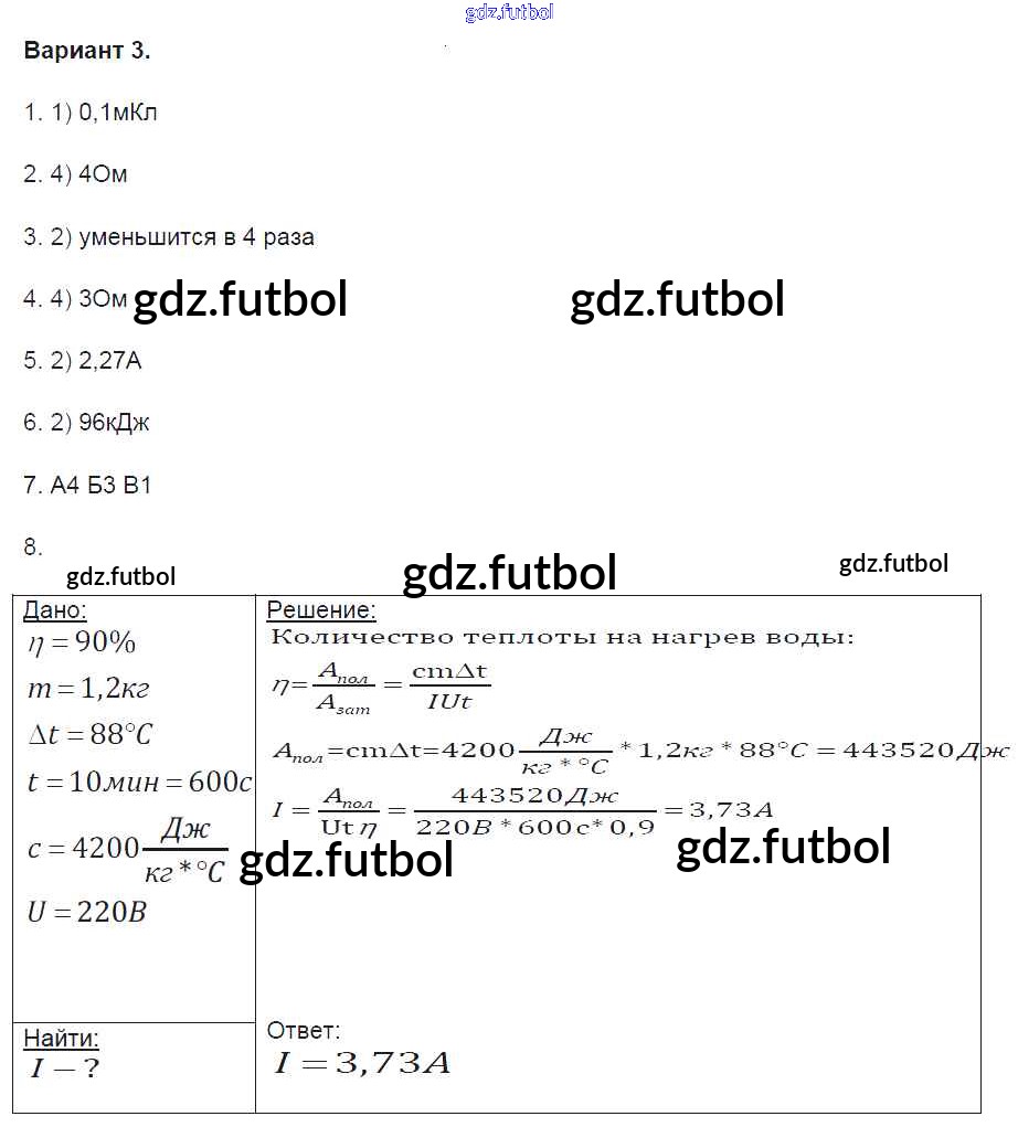 Готовые домашние задания по Физике за 8 класс Громцева Контрольные и самостоятельные работы УМК 2017 ФГОС - 2.2. Электрические явления вариант-3