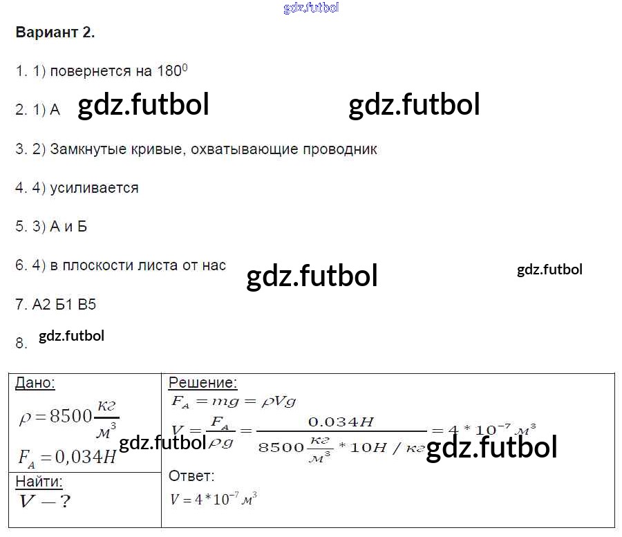 Готовые домашние задания по Физике за 8 класс Громцева Контрольные и самостоятельные работы УМК 2017 ФГОС - Глава 3. Электромагнитные явления вариант-2