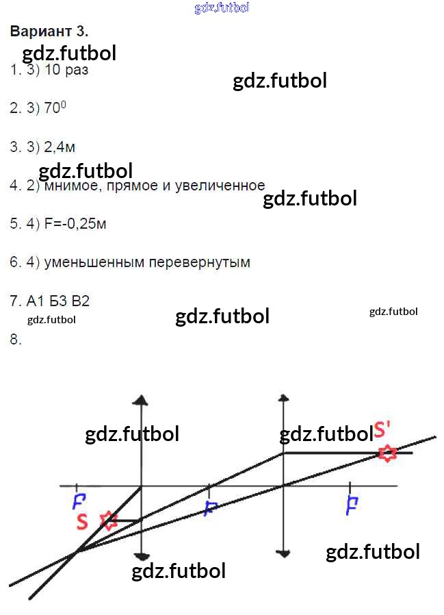 Готовые домашние задания по Физике за 8 класс Громцева Контрольные и самостоятельные работы УМК 2017 ФГОС - Глава 4. Световые явления вариант-3
