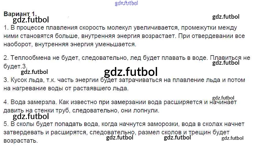 Готовые домашние задания по Физике за 8 класс Громцева Контрольные и самостоятельные работы УМК 2017 ФГОС - СР №10. Агрегатные состояния вещества вариант-1
