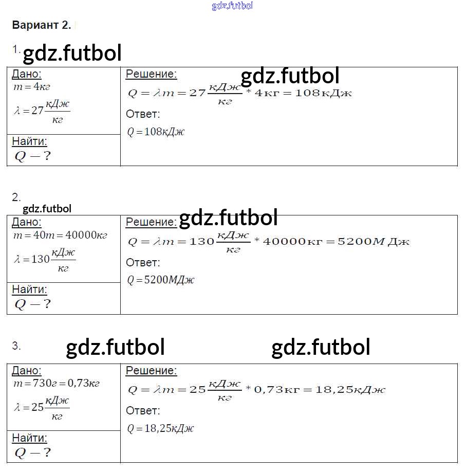 Готовые домашние задания по Физике за 8 класс Громцева Контрольные и самостоятельные работы УМК 2017 ФГОС - СР №12. Удельная теплота плавления вариант-2