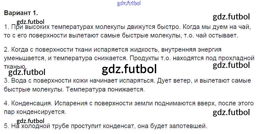 Готовые домашние задания по Физике за 8 класс Громцева Контрольные и самостоятельные работы УМК 2017 ФГОС - СР №14. Поглощение энергии при испарении жидкости и выделение ее при конденсации пара вариант-1