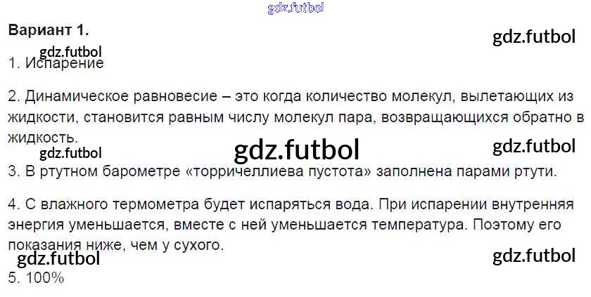 Готовые домашние задания по Физике за 8 класс Громцева Контрольные и самостоятельные работы УМК 2017 ФГОС - СР №16. Влажность воздуха вариант-1