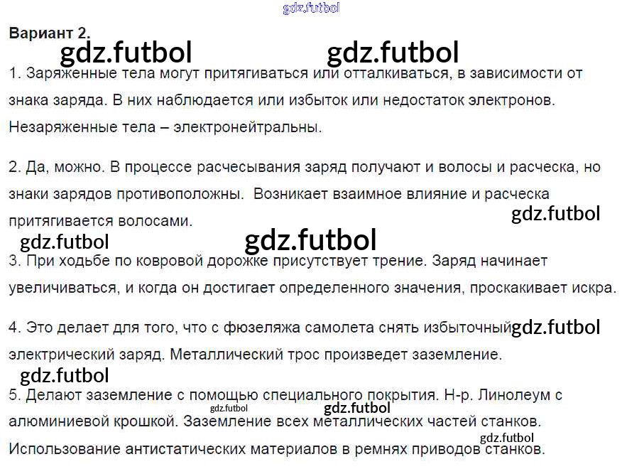 Готовые домашние задания по Физике за 8 класс Громцева Контрольные и самостоятельные работы УМК 2017 ФГОС - СР №22. Электризация тел при соприкосновении вариант-2