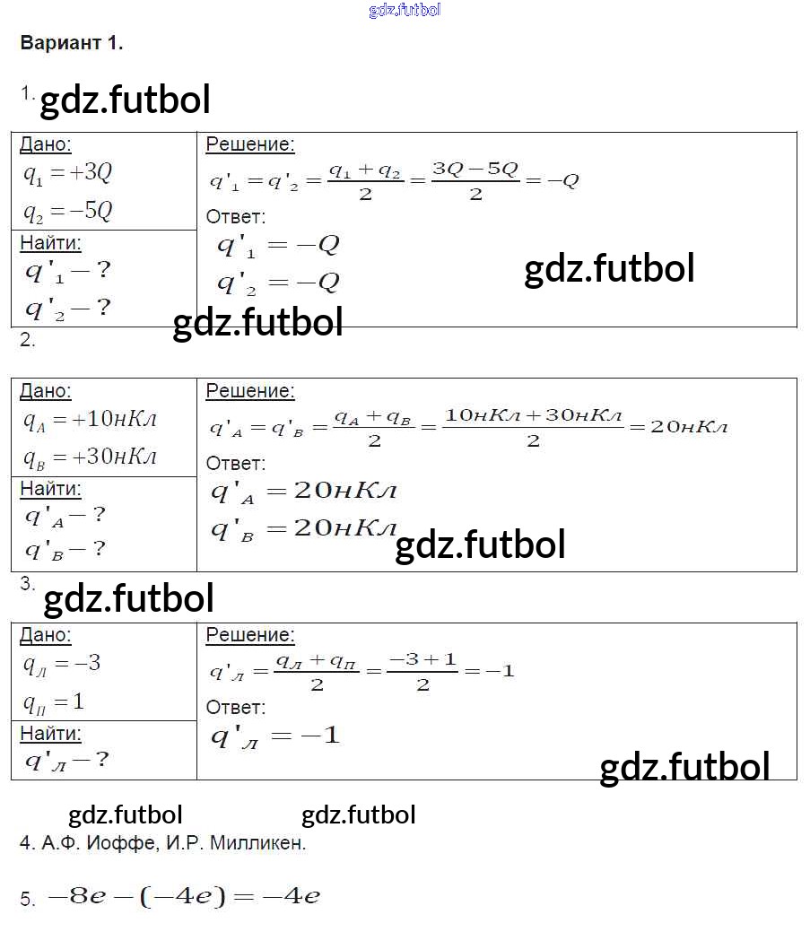 Готовые домашние задания по Физике за 8 класс Громцева Контрольные и самостоятельные работы УМК 2017 ФГОС - СР №24. Делимость электрического заряда. Электрон вариант-1