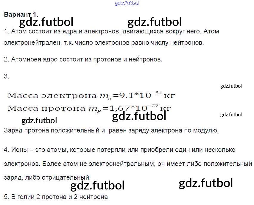 Готовые домашние задания по Физике за 8 класс Громцева Контрольные и самостоятельные работы УМК 2017 ФГОС - СР №25. Строение атомов вариант-1