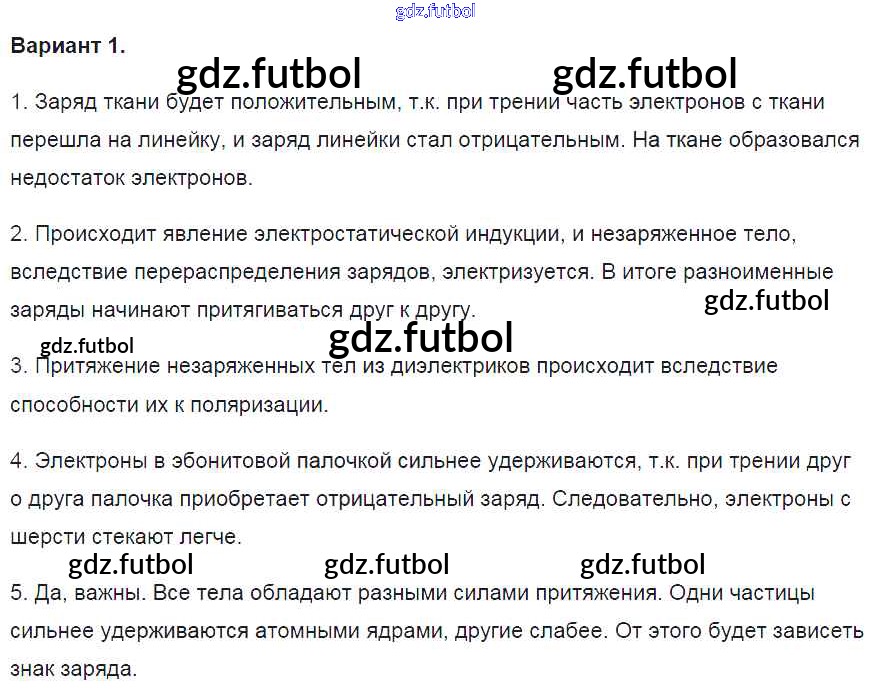 Готовые домашние задания по Физике за 8 класс Громцева Контрольные и самостоятельные работы УМК 2017 ФГОС - СР №26. Объяснение электрических явлений вариант-1