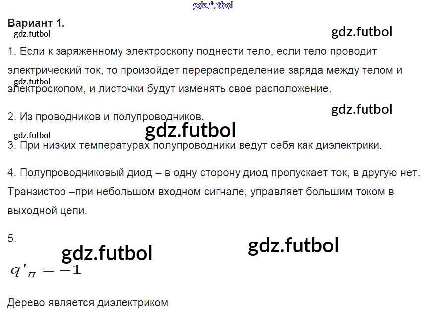 Готовые домашние задания по Физике за 8 класс Громцева Контрольные и самостоятельные работы УМК 2017 ФГОС - СР №27. Проводники, полупроводники и непроводники вариант-1